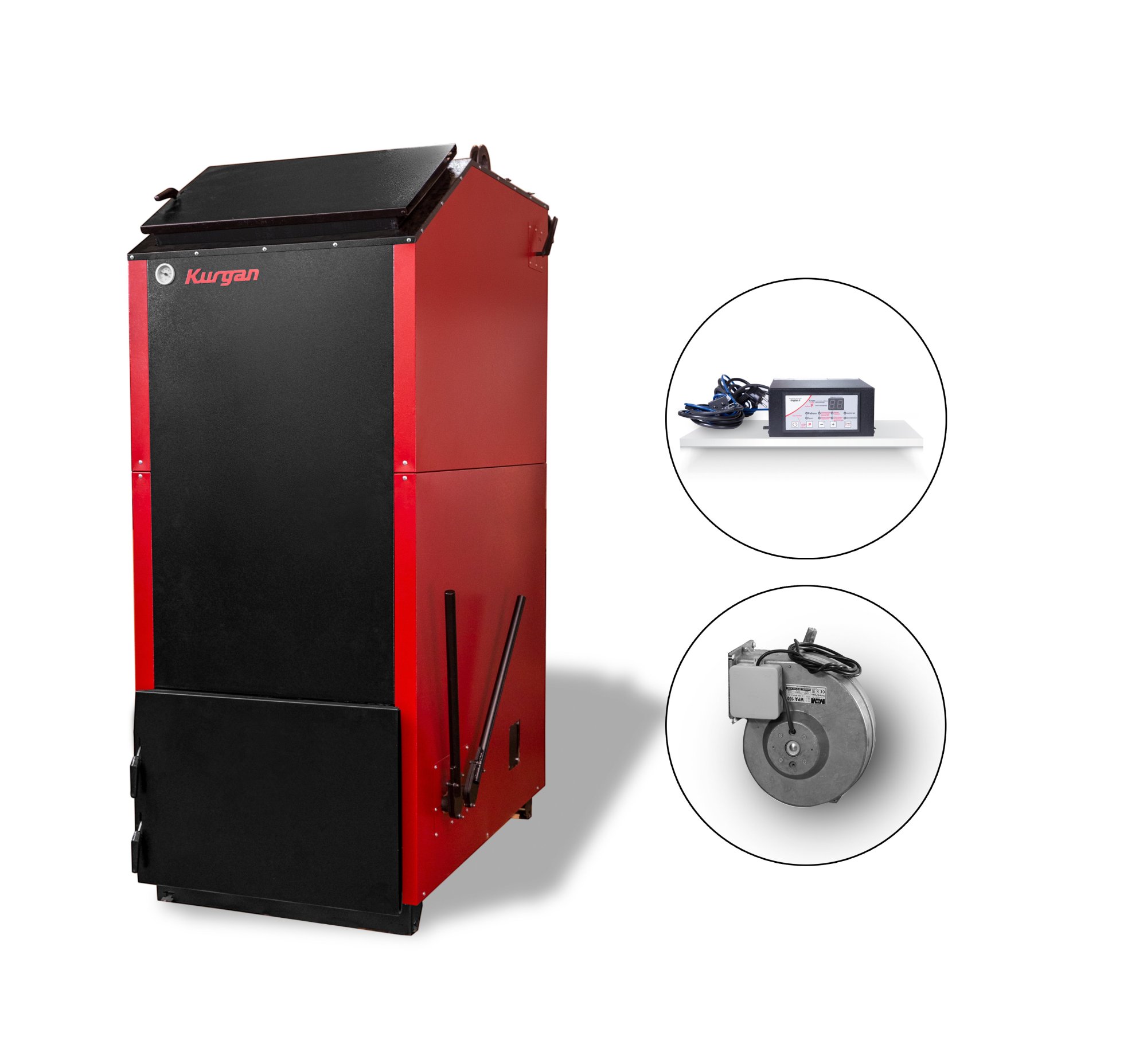 Kurgan Maxi 230 – твердотопливный котёл для отопления жилых, коммерческих, производственный зданий и сооружений, индивидуальных жилых домов и других помещений различного назначения, оборудованных системой отопления с принудительной циркуляцией.